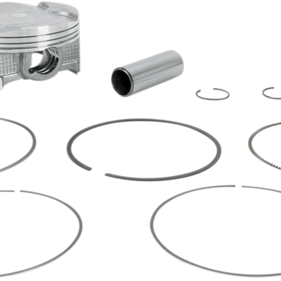 Caracteristicas: Quality and construction that meets or exceeds OEM Feature improved E-clip design Contain piston, rings, pin and clips Additional rings available separately Order one per cylinder Skirts have a nonabrasive, expansion-retarding MOS2 coating to reduce heat and friction for added power and longevity MOS2 coating actually draws heat through piston walls and out the bottom Specially hardened tops add strength to ring grooves