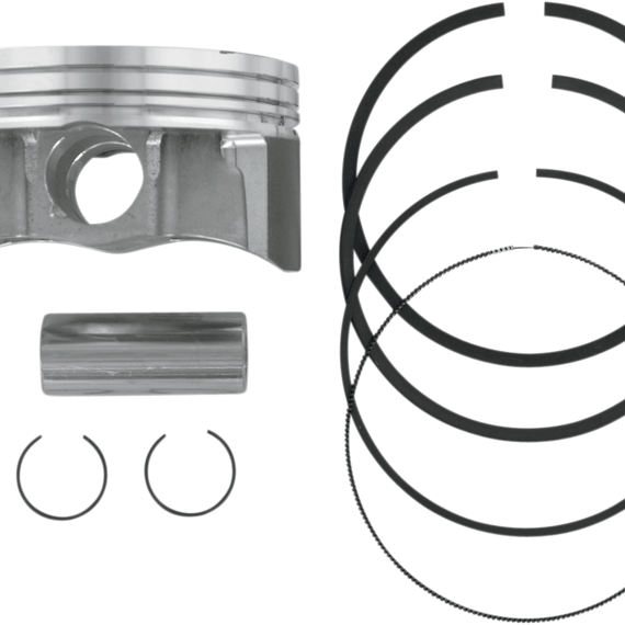 Caracteristicas: Quality and construction that meets or exceeds OEM Feature improved E-clip design Contain piston, rings, pin and clips Additional rings available separately Order one per cylinder Skirts have a nonabrasive, expansion-retarding MOS2 coating to reduce heat and friction for added power and longevity MOS2 coating actually draws heat through piston walls and out the bottom Specially hardened tops add strength to ring grooves
