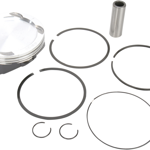 Caracteristicas: Quality and construction that meets or exceeds OEM Feature improved E-clip design Contain piston, rings, pin and clips Additional rings available separately Order one per cylinder Skirts have a nonabrasive, expansion-retarding MOS2 coating to reduce heat and friction for added power and longevity MOS2 coating actually draws heat through piston walls and out the bottom Specially hardened tops add strength to ring grooves