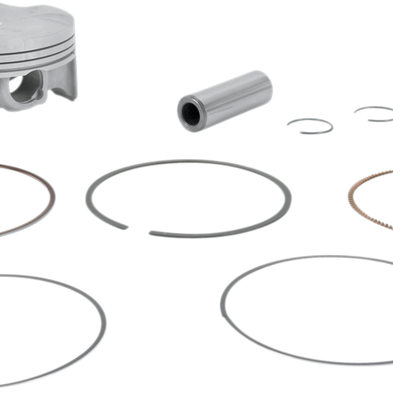 Caracteristicas: Quality and construction that meets or exceeds OEM Feature improved E-clip design Contain piston, rings, pin and clips Additional rings available separately Order one per cylinder Skirts have a nonabrasive, expansion-retarding MOS2 coating to reduce heat and friction for added power and longevity MOS2 coating actually draws heat through piston walls and out the bottom Specially hardened tops add strength to ring grooves