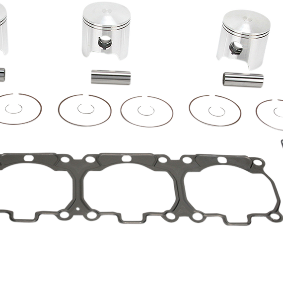 Caracteristicas: Most Wiseco 2-cycle pistons are forged from high-silicone bar stock Greater strength and lower expansion at high temperatures Complete piston kits include High-Performance forged pistons, rings, wrist pins, circlips and top-end gasket kit for one complete engine All Wiseco High-Performance pistons are priced with rings, wrist pins and circlips Wiseco ring types are not interchangeable (i.e., CD is not interchangeable with LC) and fit only Wiseco pistons WARNING: Wiseco pistons can be fitted only with Wiseco rings.