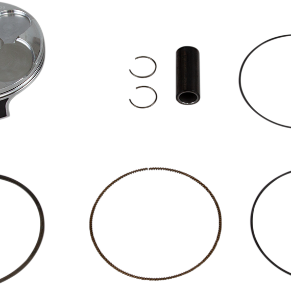 Caracteristicas: All pistons are heat-treated with a T-5 hardening and tempering cycle All piston skirts are coated with a high-tech Molybdenum Disulphite coating for faster break-in time and increased piston life Forged pistons are forged from 2618 aluminum for superior strength and durability Forged High Compression pistons improve power and torque across entire rpm range Forged Replica pistons are forged OE replacements Replica pistons and all rings are OEM replacements Kits include piston, rings, wrist pin and circlips