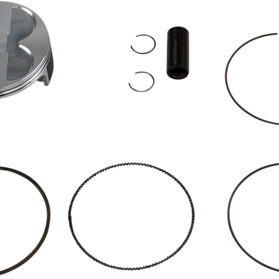 Caracteristicas: All pistons are heat treated with a T-5 hardening and tempering cycle All piston skirts are coated with a high-tech Molybdenum Disulphite coating for faster break-in time and increased piston life Cast piston kits are gravity cast aluminum alloy (not forged) with 18% silicone content, which produces an extremely light but very strong piston Forged pistons are forged from 2618 aluminum for superior strength and durability Forged High Compression pistons improve power and torque across entire rpm range Big Bore pistons increase engine’s displacement, torque, and peak horsepower Forged Replica pistons are forged OE replacements Replica pistons and all rings are OEM replacements Kit include piston, rings, wrist pin and circlips Replacement two-stroke piston rings sold individually; four-stroke piston rings sold as a set as needed Top End Kits include Piston Kit and a Top End Gasket Kit, top-end bearing and cam chain.