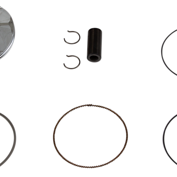 Caracteristicas: All pistons are heat treated with a T-5 hardening and tempering cycle All piston skirts are coated with a high-tech Molybdenum Disulphite coating for faster break-in time and increased piston life Cast piston kits are gravity cast aluminum alloy (not forged) with 18% silicone content, which produces an extremely light but very strong piston Forged pistons are forged from 2618 aluminum for superior strength and durability Forged High Compression pistons improve power and torque across entire rpm range Big Bore pistons increase engine’s displacement, torque, and peak horsepower Forged Replica pistons are forged OE replacements Replica pistons and all rings are OEM replacements Kit include piston, rings, wrist pin and circlips Replacement two-stroke piston rings sold individually; four-stroke piston rings sold as a set as needed Top End Kits include Piston Kit and a Top End Gasket Kit, top-end bearing and cam chain.