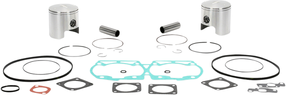 Caracteristicas: Most Wiseco 2-cycle pistons are forged from high-silicone bar stock Greater strength and lower expansion at high temperatures Complete piston kits include High-Performance forged pistons, rings, wrist pins, circlips and top-end gasket kit for one complete engine All Wiseco High-Performance pistons are priced with rings, wrist pins and circlips Wiseco ring types are not interchangeable (i.e., CD is not interchangeable with LC) and fit only Wiseco pistons WARNING: Wiseco pistons can be fitted only with Wiseco rings.
