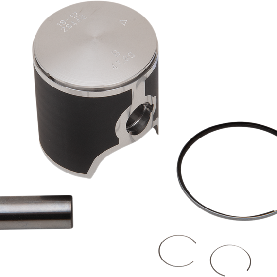 Caracteristicas: All pistons are heat treated with a T-5 hardening and tempering cycle All piston skirts are coated with a high-tech Molybdenum Disulphite coating for faster break-in time and increased piston life Cast piston kits are gravity cast aluminum alloy (not forged) with 18% silicone content, which produces an extremely light but very strong piston Forged pistons are forged from 2618 aluminum for superior strength and durability Forged High Compression pistons improve power and torque across entire rpm range Big Bore pistons increase engine’s displacement, torque, and peak horsepower Forged Replica pistons are forged OE replacements Replica pistons and all rings are OEM replacements Kit include piston, rings, wrist pin and circlips Replacement two-stroke piston rings sold individually; four-stroke piston rings sold as a set as needed Top End Kits include Piston Kit and a Top End Gasket Kit, top-end bearing and cam chain.