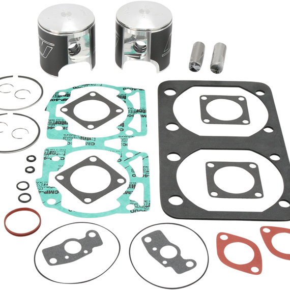 Caracteristicas: Most Wiseco 2-cycle pistons are forged from high-silicone bar stock Greater strength and lower expansion at high temperatures Complete piston kits include High-Performance forged pistons, rings, wrist pins, circlips and top-end gasket kit for one complete engine All Wiseco High-Performance pistons are priced with rings, wrist pins and circlips Wiseco ring types are not interchangeable (i.e., CD is not interchangeable with LC) and fit only Wiseco pistons WARNING: Wiseco pistons can be fitted only with Wiseco rings.