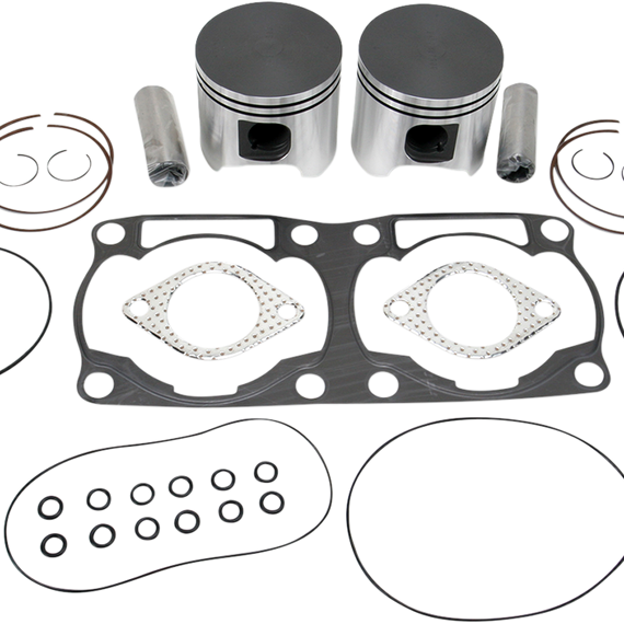 Caracteristicas: Most Wiseco 2-cycle pistons are forged from high-silicone bar stock Greater strength and lower expansion at high temperatures Complete piston kits include High-Performance forged pistons, rings, wrist pins, circlips and top-end gasket kit for one complete engine All Wiseco High-Performance pistons are priced with rings, wrist pins and circlips Wiseco ring types are not interchangeable (i.e., CD is not interchangeable with LC) and fit only Wiseco pistons WARNING: Wiseco pistons can be fitted only with Wiseco rings.