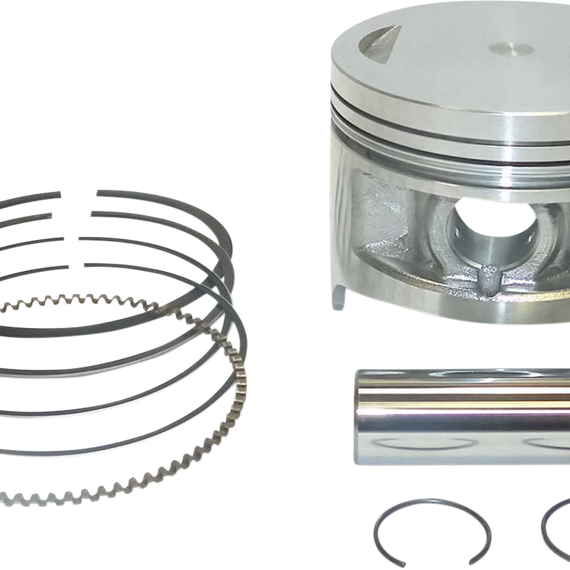 Caracteristicas: Quality and construction that meets or exceeds OEM Feature improved E-clip design Contain piston, rings, pin and clips Additional rings available separately Order one per cylinder Skirts have a nonabrasive, expansion-retarding MOS2 coating to reduce heat and friction for added power and longevity MOS2 coating actually draws heat through piston walls and out the bottom Specially hardened tops add strength to ring grooves