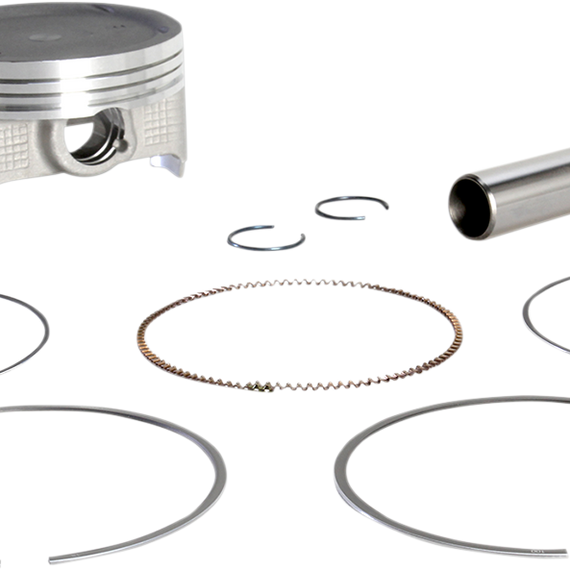 Caracteristicas: Quality and construction that meets or exceeds OEM Feature improved E-clip design Contain piston, rings, pin and clips Additional rings available separately Order one per cylinder Skirts have a nonabrasive, expansion-retarding MOS2 coating to reduce heat and friction for added power and longevity MOS2 coating actually draws heat through piston walls and out the bottom Specially hardened tops add strength to ring grooves