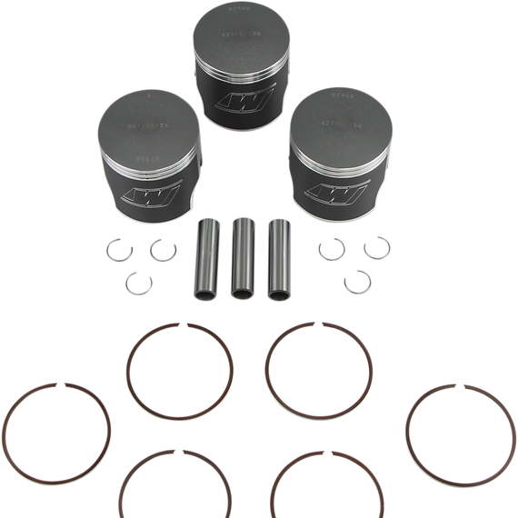 Caracteristicas: Complete engine kits include pistons, ring sets, pistons pins, retainer clips and head gasket All Wiseco pistons are forged from aerospace aluminum alloys on Wiseco's state-of-the art forging presses Built on a legacy of championships for over 60 years by American craftsmen Wiseco pistons have the latest dyno-tested technology to out-perform the competition