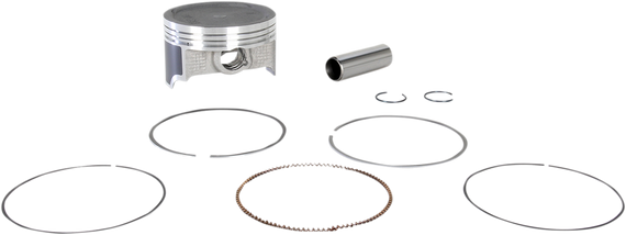 Caracteristicas: Quality and construction that meets or exceeds OEM Feature improved E-clip design Contain piston, rings, pin and clips Additional rings available separately Order one per cylinder Skirts have a nonabrasive, expansion-retarding MOS2 coating to reduce heat and friction for added power and longevity MOS2 coating actually draws heat through piston walls and out the bottom Specially hardened tops add strength to ring grooves