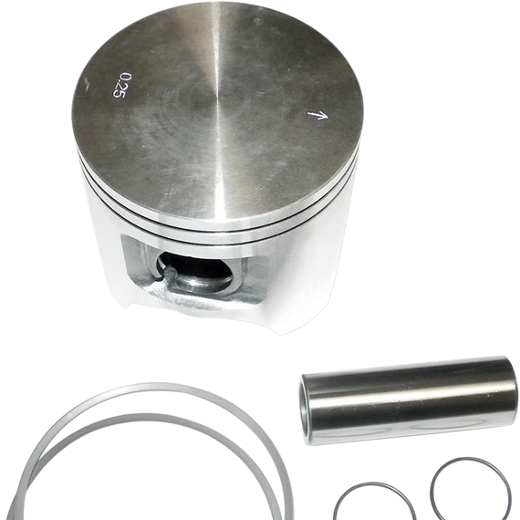 Caracteristicas: Quality and construction that meets or exceeds OEM Feature improved E-clip design Contain piston, rings, pin and clips Additional rings available separately Order one per cylinder Skirts have a nonabrasive, expansion-retarding MOS2 coating to reduce heat and friction for added power and longevity MOS2 coating actually draws heat through piston walls and out the bottom Specially hardened tops add strength to ring grooves