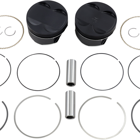 • Kit includes two pistons, rings, piston pins and circlips