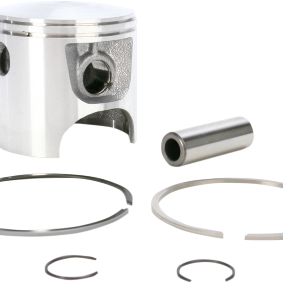 Caracteristicas: Quality and construction that meets or exceeds OEM Feature improved E-clip design Contain piston, rings, pin and clips Additional rings available separately Order one per cylinder Skirts have a nonabrasive, expansion-retarding MOS2 coating to reduce heat and friction for added power and longevity MOS2 coating actually draws heat through piston walls and out the bottom Specially hardened tops add strength to ring grooves
