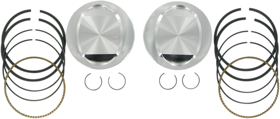 Caracteristicas: All piston kits come with two pistons, rings, wrist pins, and wrist pin keepers Compression ratios listed are approximate and are calculated using the correct length cylinders as specified by S&S Require the use of connecting rods with a rod length of 7.440"; Use of earlier connecting rods with a rod length of 7.470" will result in a slight increase in the compression ratio of about 1/2 point, and may also result in clearance problems (check all piston to cylinder head clearances carefully when using the early style rods)