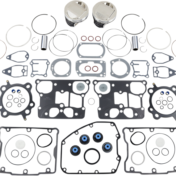 Caracteristicas: Forged from high-silicon aluminum alloy for maximum strength and dependability Contain all the necessary components for overboring or rebuilding your top end Feature forged pistons, rings, wrist pins, circlips, and top end gasket Cylinder sleeves must be purchased separately