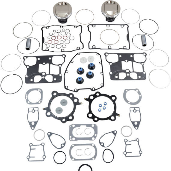 Caracteristicas: Forged from high-silicon aluminum alloy for maximum strength and dependability Contain all the necessary components for overboring or rebuilding your top end Feature forged pistons, rings, wrist pins, circlips, and top end gasket Cylinder sleeves must be purchased separately