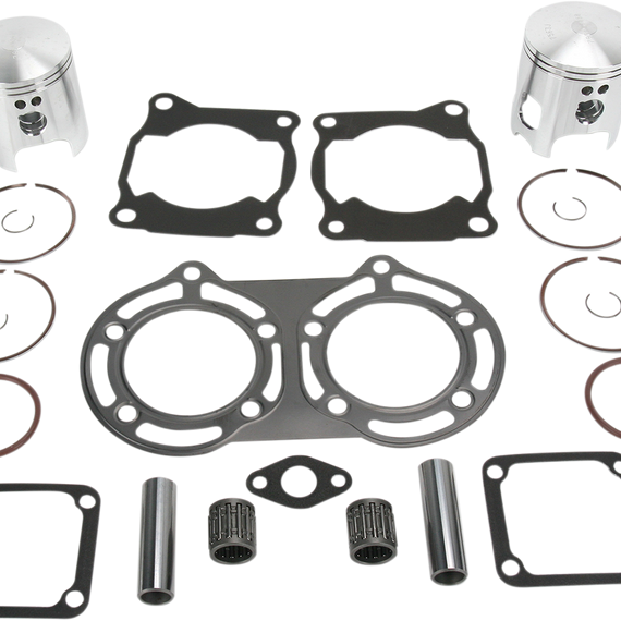 Caracteristicas: Forged from high-silicon aluminum alloy for maximum strength and dependability Contain all necessary components for overboring or rebuilding your top end Feature forged pistons, rings, wrist pins, circlips, and top end gasket Cylinder sleeves must be purchased separately Have additional features over standard Pro-Lite parts Each piston is E-coated on the crown, ring grooves, and pin bore for maximum wear resistance and protection from micro-welding, galling, and detonation Generally have less machining on the outside, which helps seal up the bore for increased compression Additionally, boost ports are removed for a more predictable powerband and increased pull on the top end