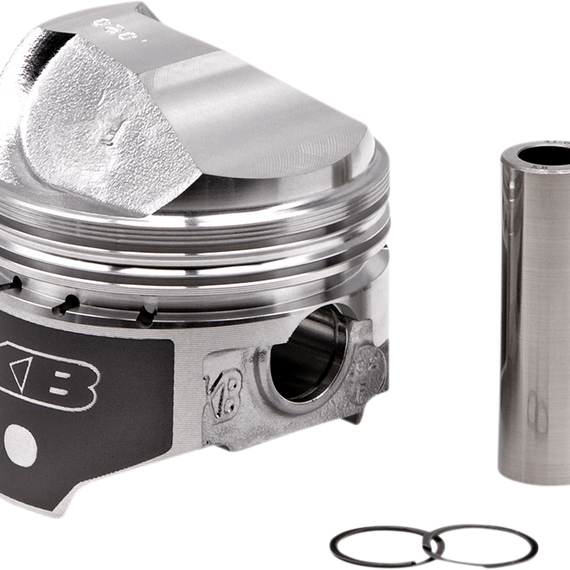 Caracteristicas: Manufactured from high-strength, T-5, heat-treated, 390 hypereutectic aluminum alloy Allow a tighter fit and longer piston and ring life Diamond-machined pistons are held to plus or minus one gram weight and less than one-half-thousandth-inch (.0005") tolerances from piston to piston Each kit contains two pistons, pins, spiral-lock pin clips and Hastings moly rings Replacement piston rings and pin lock rings available separately KB pistons can be installed tighter than other pistons. This results in less piston rock and better ring seal. Please read instructions included with piston for correct piston clearance. Due to the thermal conductivity and design of KB pistons, special attention is required to the top ring end gap. Please read instructions furnished with piston for correct ring installation.