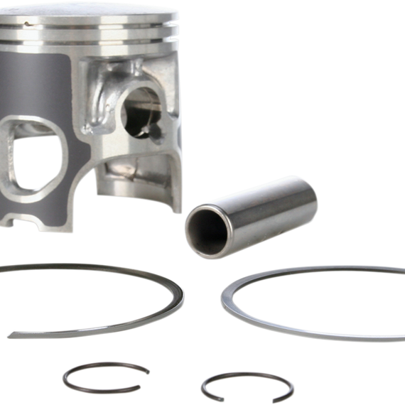 Caracteristicas: Quality and construction that meets or exceeds OEM Feature improved E-clip design Contain piston, rings, pin and clips Additional rings available separately Order one per cylinder Skirts have a nonabrasive, expansion-retarding MOS2 coating to reduce heat and friction for added power and longevity MOS2 coating actually draws heat through piston walls and out the bottom Specially hardened tops add strength to ring grooves