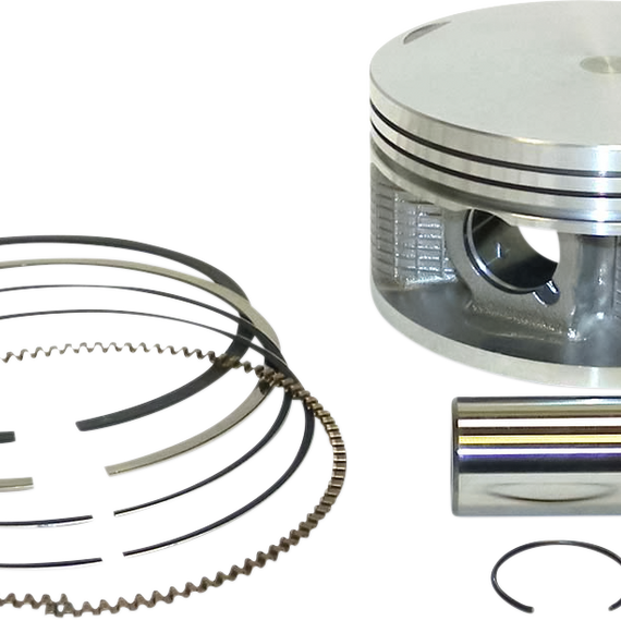 Caracteristicas: Quality and construction that meets or exceeds OEM Feature improved E-clip design Contain piston, rings, pin and clips Additional rings available separately Order one per cylinder Skirts have a nonabrasive, expansion-retarding MOS2 coating to reduce heat and friction for added power and longevity MOS2 coating actually draws heat through piston walls and out the bottom Specially hardened tops add strength to ring grooves