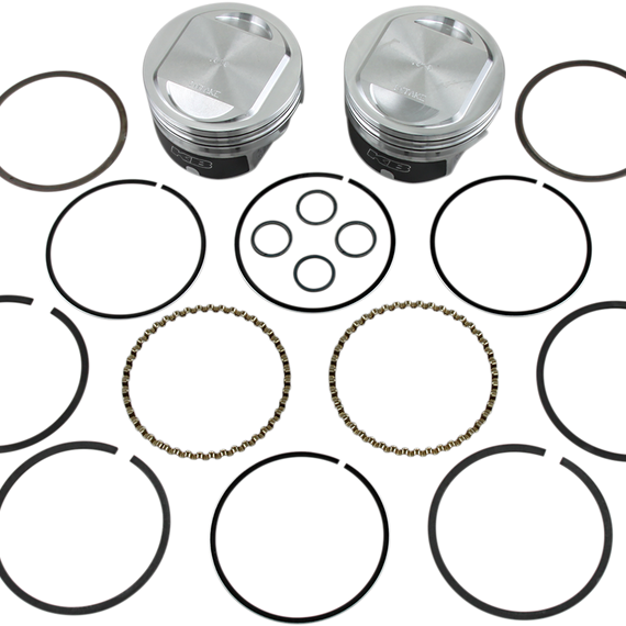 Caracteristicas: Manufactured from high-strength, T-5 heat-treated, 390 hypereutectic aluminum alloy Allows a tighter fit and longer piston and ring life Diamond-machined pistons are held to plus or minus one gram weight and less than one-half-thousandth-inch (.0005") tolerances from piston to piston Each kit contains two pistons, pins, spiral-lock pin clips and Hastings moly rings Replacement piston rings sold separately KB pistons can be installed tighter than other pistons. This results in less piston rock and better ring seal. Please read instructions included with piston for correct piston clearance Due to the thermal conductivity and design of KB pistons, special attention is required to the top ring end gap. Please read instructions furnished with piston for correct ring installation Use lock rings Part #0913-0001 (4-pk)