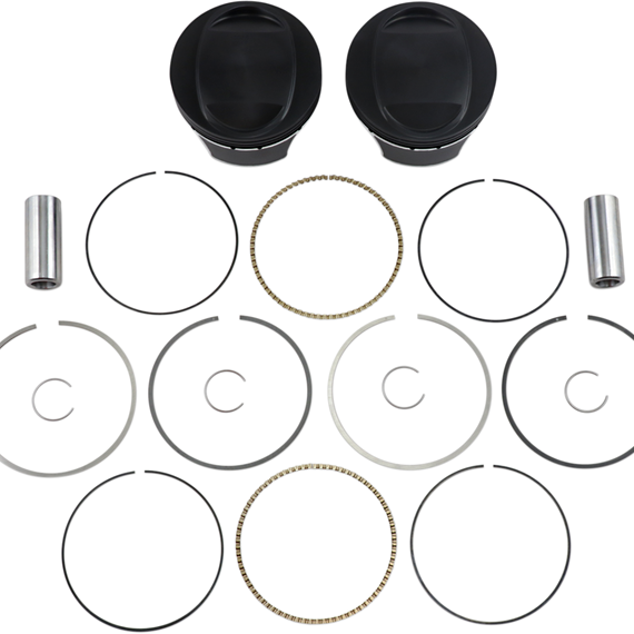 Caracteristicas: Wiseco's high-tech manufacturing ensures greater operating strength and lower expansion at high temperatures Kits include forged pistons with ArmorGlide™ coated skirts, rings, retainer clips, and chrome piston pins Twin Cam pistons have ArmorPlating which improves ring seal, eliminates ring micro-welding, and improves the piston's ability to defend against detonation damage Pistons are made in the U.S.A. Replacement rings include rings for one piston only. Wiseco pistons that use VM-rings can only be fitted with Wiseco VM-rings; Wiseco pistons that use XC-rings can only be fitted with Wiseco XC-rings.