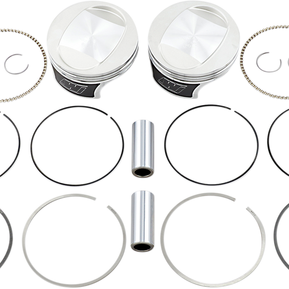 Caracteristicas: Forged piston crown with generous valve pockets for big valves and cams Precision-fit rings selected for each application for ultimate sealing Force-fed pin oiling provides enhanced lubrication of the piston pin Pressure seal groove reduces ring lifting and power loss ArmorGlide® skirt coating reduces friction, providing quieter operation and improving scuff resistance Valued-packaged with two pistons, rings, piston pins and circlips Made in the U.S.A