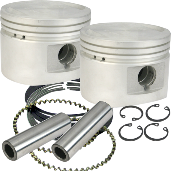 Caracteristicas: Increase the displacement of 883cc and 1200cc engines to 1250cc at 10.3:1 compression Cast Flat-Topped Replacement Piston Kits For 1984-'99 HD® Big Twins with Stock Heads or S&S Performance Replacement Heads May be used with stock 1200cc cylinder heads, but S&S CNC ported heads are recommended Stock 1200cc cylinders and 1986-'2003 883cc cylinders may be bored to accept the 3-9/16" bore 1250cc pistons, but 2004-'16 883cc cylinders may not be used