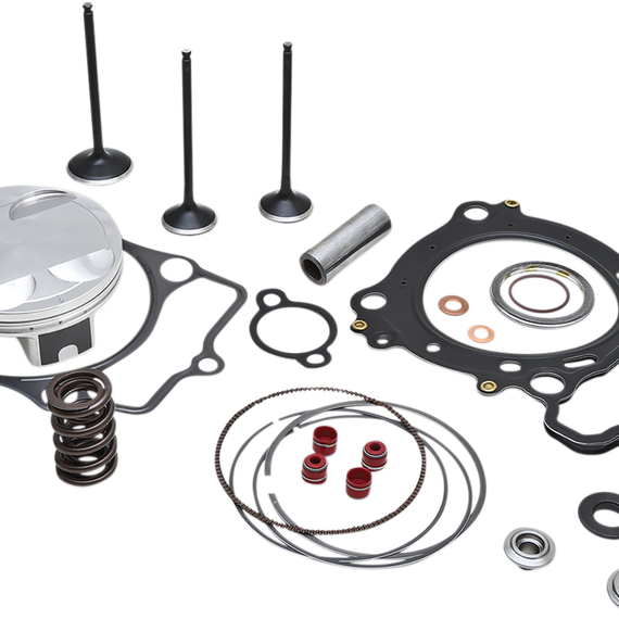 Caracteristicas: The only safe way to maximize compression; the valve reliefs in the piston are purposely convex and match the geometry of the dishes in the valves Conversion to Black Diamondƒ?½ stainless steel valves offers up to twice the life of the stock titanium valves No loss in performance Kit includes: piston, rings, clip and pin, Cometic top end gasket kit, Black Diamond engine valves (standard size) and dual spring titanium retainer springs (.395" lift intake, .0370" lift exhaust) Made in the U.S.A. Pistons, rings, valves and pin clips in this kit are designed to work as a system, they are NOT COMPATIBLE with the OEM components and should ONLY be used as a kit.