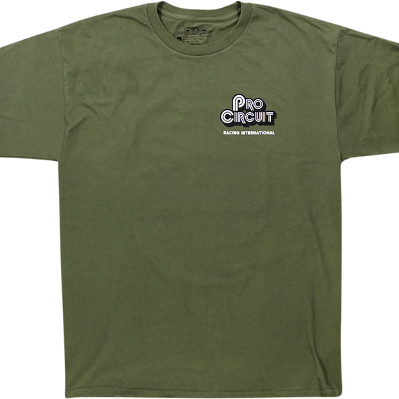 • Classic retro look with a Pro Circuit Racing International design printed on the wearer's left chest, and vintage '70s pit bike design on back