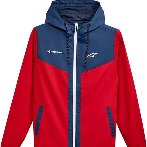 Caracteristicas: Lightweight color blocked windbreaker jacket Fixed hood with drawcords, reverse coil zipper at front On seam hand pockets, bungie adjusters at hem, elastic cuffs Internal main label and external label branding Logos at left and right chest 100% Polyester, DWR Coating