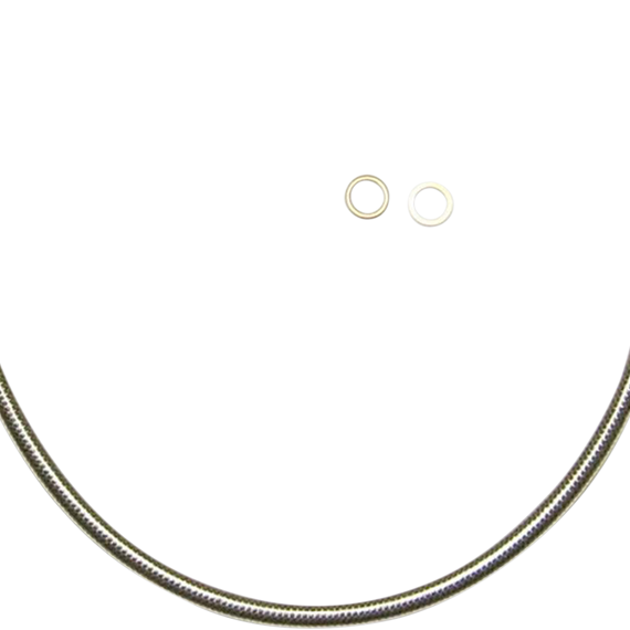 Caracteristicas: Manufactured with an enhanced construction designed to be compatible with Harley-Davidson ABS requirements for stock and alternate length brake lines- designed to follow the same routing path as OEM lines Brake kits consist of a direct fit lower assembly used in conjunction with alternative length upper lines Braid color and weave match all MAGNUM control cables and brake lines - Crystal clear outer jacket offers exceptional protection against scuffing paint or chrome and will never discolor Brake lines are constructed with PTFE inner tubing, DuPont™ Kevlar® aramid fiber, premium Signature Magnum braids and an outer PVC jacket to greatly reduce line expansion Upper, lower, mid brake line and adapter kits are sold separately to for a perfect fit. Compliant with all DOT FMVSS-106 requirements Assembled in the U.S.A. DuPont™ and Kevlar® are trademarks or registered trademarks of E.I. du Pont de Nemours and Company. Single disc Dyna and Sportster models use two kits – one upper and one lower. Softail models utilize 3 kits (except 2018+ dual disc), with the lower being optional on all. Upper kits are required for handlebar changes; by using either an upper brake line adapter or for 11–17 Softail models, the optional ABS Lower Brake Line Kit which includes the adapter. Adapter for Softail models allows the upper brake line to complete the connection from the ABS controller (2011-2017) or lower brake line (2018+) to the master cylinder If replacing the stock lower brake line assembly on 2018+ dual disc Softails, an adapter is NOT needed. Using -3AN fittings, the upper line connects directly to the Magnum lower assembly Dual disc Touring models use three kits - one upper, one lower and one mid-line. Trike models use two kits - one upper and one mid-line. No lower is available. A Designer mid-line and upper line is required for all Touring and Trike models with ABS. The mid-line connects to the upper brake line in the fairing or nacelle and completes the routing from the master cylinder to the ABS controller. A lower kit is optional. Non-stock applications require taking a measurement for upper brake line length and banjo angle to ensure correct fitment (see How to Order) Harley-Davidson motorcycles equipped with ABS (anti-lock brake system) require ABS specific upper and lower brake line kits. Failure to do so may result in compromised anti-lock braking ability. Magnum Shielding upper brake line kits manufactured specifically for these applications are identified with the letters “ABS” printed directly on the brake hose. Upper line length for Softail, Dyna, and 14+ Sportster models is determined by using your stock OE master cylinder brake line as a guide. Pull the rubber boot back and measure from the point at which the soft, flexible line enters the crimp collar on the lower portion. Follow the brake line routing up to your master cylinder. (see diagrams below) 2018+ Softail – Upper line replacement when reusing the stock lower brake line. (adapter required) Lengths are determined by using the stock master cylinder line for a guide. Measure from the lower brake line manifold where the upper line attaches, up to the master cylinder. From that measurement subtract 1.5” for the adapter and round up to the next number to determine upper line length. (see diagram below) 2018+ Softail Single Disc Upper and Lower line replacement requires an adapter. (3 kits) Adapter is NOT needed when replacing both the Upper and Lower 2018+ Softail Dual Disc brake lines. (2 Kits) The upper line connects directly to the Magnum Designer dual disc lower brake line. Follow the above instruction without subtracting 1.5” for the adapter. Rounded up, the length measured will be correct. Upper line length for Touring and Trike models is measured using the 49 inch mid-line as a reference to determine additional line length needed to complete the routing from the ABS controller to the master cylinder. That measurement will be your upper line length. (see diagram below).