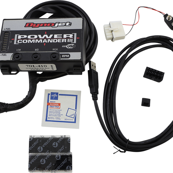 Caracteristicas: Each unit includes a built-in microprocessor and a specific map designed to improve engine performance over stock; Dynojet continuously maps new calibrations for each bike for downloading at their web site(www.powercommander.com) USB (Universal Serial Bus) port provides an instant and automatic connection to the Power Commander Control Center software; simply power up the unit and connect the PCIII USB to the computer with the supplied cable Provides precise information for fine-tuning a fuel-injected motorcycle when changing an air filter, installing a new exhaust system or doing additional engine performance modifications Direct injector control technology manages the fuel curve on models that do not have the sensors to monitor fuel adjustment OEM-style wiring connectors with improved harness protection are supplied; no wiring modifications required If you do not have a computer, you can change the settings with three touch buttons on the faceplate Features an expansion port for future add-on modules from Dynojet Software is compatible with Windows 2000/XP/Vista and Windows 7 USB special cable and 9V battery power adapter are included Includes easy-to-follow instructions Made in the U.S.A.