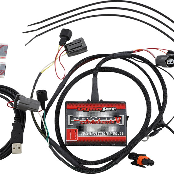 Caracteristicas: Power Commander V is capable of allowing each cylinder to be mapped individually and for each gear with the gear position input connected "Warm up" fuel adjustment (unit reads engine temp and allows fuel/timing adjustments based on the reading) Can add any Single Pole Single Throw (SPST) switch and toggle between two different fuel maps Build an adjustment table based on analog input such as boost or temperature USB powered from computer; 9 volt adapter is no longer needed Fuel control for each individual cylinder in a small enclosure Analog input allows user to install any 0-5 volt sensor Two position map switching function built in Reduced size from the PCIII USB More tuning ranges than PCIII USB Enhanced "accel pump" utility Made in the U.S.A. Easy to install