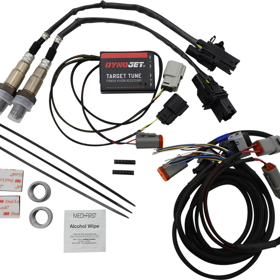 Caracteristicas: Includes OEM style connectors to plug into factory O² harness, either 2 or 4 pin versions Allows the factory ECM to interpret and use wideband O² sensor signals Retains OEM closed loop and achieves adaptive fuel control strategy Target fuel table from the calibration is achieved in real time Does not interfere with dealer diagnostic/service tools Learns and uses VE table corrections as you ride