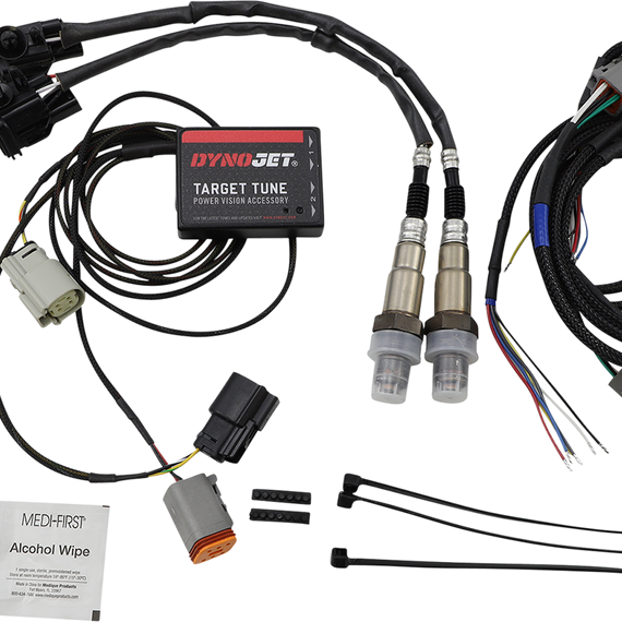 Caracteristicas: Includes OEM style connectors to plug into factory O² harness, either 2 or 4 pin versions Allows the factory ECM to interpret and use wideband O² sensor signals Retains OEM closed loop and achieves adaptive fuel control strategy Target fuel table from the calibration is achieved in real time Does not interfere with dealer diagnostic/service tools Learns and uses VE table corrections as you ride