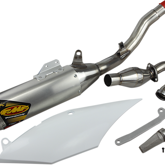 Caracteristicas: Hi-Flo end cap boosts all-around performance Computer-designed and dyno-tested for every 4-stroke application Enhanced sonic evacuation delivers a higher flow of exhaust gases, which increases power A stainless steel mid-pipe mates to the computer-designed rear can for lightweight durability Round perforated steel inner cores make for optimum flow, using hi-flo technology FMF's exclusive cross-weave internal packing provides longevity and maximum sound dispersion Elliptical aluminum can offers strategic sizing for superior performance Optional Quiet Core insert will provide a decrease in sound level if desired Feature a screen-type spark arrestor that does not interrupt exhaust flow or performance