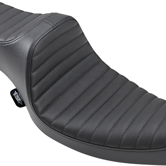 Caracteristicas: Automotive-grade vinyl Features a 6" tall driver support with unique styling Molded polyurethane foam for maximum comfort and styling Seat is made narrow up front for better leg clearance 3/16" ABS thermoformed seat base for a perfect fit Rubber bumpers and fully carpeted bottom to protect paint Fits with all Drag Specialties and most H-D sissy bars Made in the U.S.A.
