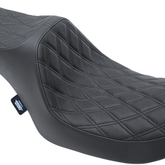 Caracteristicas: Automotive-grade vinyl Molded polyurethane foam for maximum comfort and styling Seat is made narrow up front for better leg clearance 3/16" ABS thermoformed seat base for a perfect fit Rubber bumpers and fully carpeted bottom to protect paint Fits with all Drag and most H-D sissy bars Made in the U.S.A.