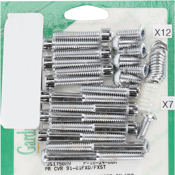 Caracteristicas: Kits features polished chrome steel socket-head bolts includes primary, inspection and derby covers Made in the U.S.A.