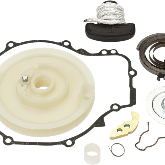 Caracteristicas: Made to repair the pull start mechanism in ATVs Kit includes the starter reel, return spring, ratchet, friction spring, friction plate, spring, bushing, recoil gasket and rope assembly