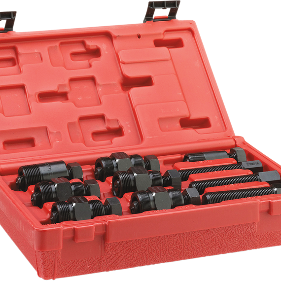 • Includes thread pitch and size combinations to fit almost all motorcycles and ATVs: M14 x 1.5 pitch, M16 x 1.5 pitch, M18 x 1.5 pitch, M19 x 1.0 pitch, M20 x 1.0 pitch, M22 x 1.0 pitch, M22 x 1.5 pitch, M24 x 1.0 pitch, M25 x 1.5 pitch, M26 x 1.0 pitch, M26 x 1.5 pitch, M27 x 1.0 pitch, M27 x 1.25 pitch, M28 x 1.0 pitch, M28 x 1.5 pitch