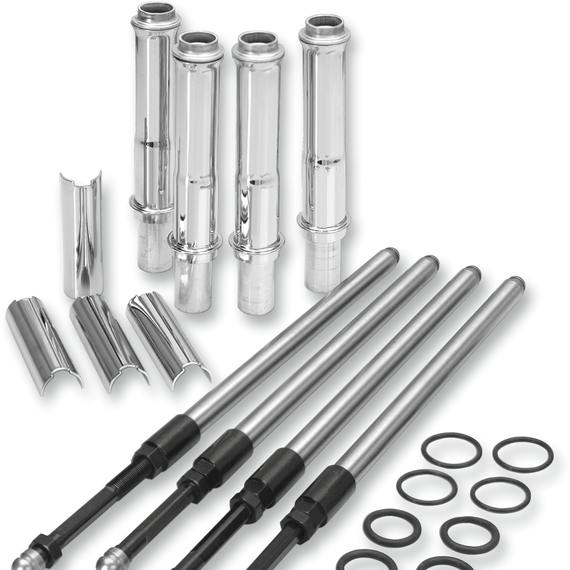 Caracteristicas: Kits include four S&S adjustable pushrods or Quickee pushrods, four pushrod covers, O-rings Pushrods are manufactured from chromoly steel for superior strength Pushrod covers are chrome-plated Installation does not require the removal of the rocker boxes Made in the U.S.A. Requires the removal of tappet blocks for installation.