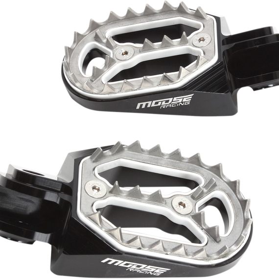 Caracteristicas: Two-piece light weight footpeg design CNC machined aluminum alloy construction Extra wide replaceable stainless steel footplate providing the rider with ultimate grip The stainless steel footplate also sits inside a rubber damper helping to absorb shock Use your OEM springs Available in black only