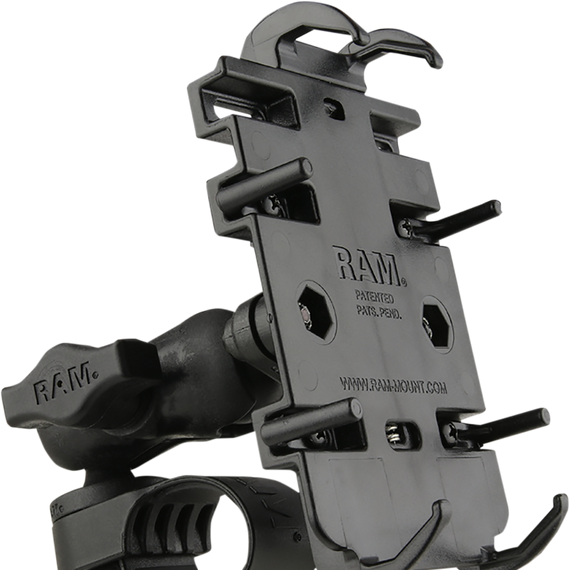 Caracteristicas: Low-profile handlebar mount for phones includes the RAM® Tough-Strap™, easily attaching to your handlebar with the turn of a single knob Ideal handlebar phone mount for all bike types, including mountain bikes, road bikes and e-bikes Kit includes a short length RAM® B-size socket arm, B-size ball base, and spring-loaded RAM® phone holder Adjustable side supports that provide a secure fit for a variety of phones and other devices with and without a case Ball and socket technology allows for near-infinite adjustability Includes two different strap sizes for handlebars ranging from 7/8"-1", 1" to 1-1/4" and 1-1/4" to 1-3/8" Made of high-strength composite and stainless steel hardware for durability and reliability in the most demanding environments