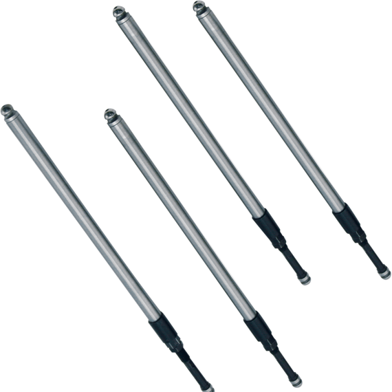 Caracteristicas: Feature revolutionary design - allows quicker, easier installation without the removal of the rocker covers .4375” diameter Chromoly steel Threaded adjuster screws into the pushrod until the threads disengage and the adjuster simply slides into the pushrod, making installation or removal a snap Once the pushrod is installed and adjusted, the lock nut prevents the adjuster from moving The ball ends of the pushrods are drilled so that oil can flow through the pushrod Made in the U.S.A. Twin Cam and XL applications will require aftermarket pushrod tubes that allow access to adjusters. S&S Quickee pushrods are designed especially for use with Evolution and Twin Cam style hydraulic tappets. They are not compatible with stock or aftermarket Shovelhead hydraulic tappets or most solid-style tappets.