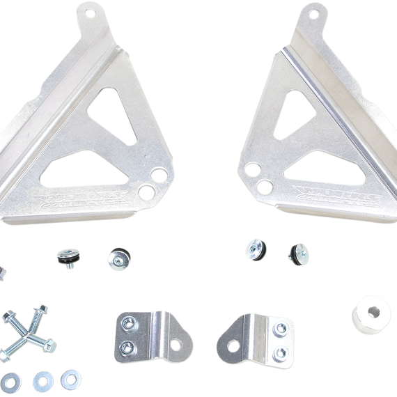 Caracteristicas: CNC-machined from aircraft grade 5052 aluminum Reinforces radiators to help prevent costly radiator replacement Lightweight, custom fit, tuck in cleanly behind radiator shrouds Simple bolt-on All necessary mounting hardware included Made in the U.S.A.