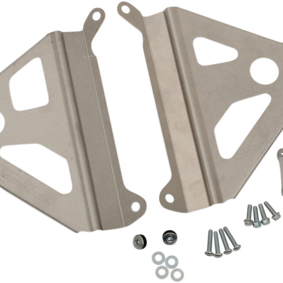 Caracteristicas: CNC-machined from aircraft grade 5052 aluminum Reinforces radiators to help prevent costly radiator replacement Lightweight, custom fit, tuck in cleanly behind radiator shrouds Simple bolt-on All necessary mounting hardware included Made in the U.S.A.